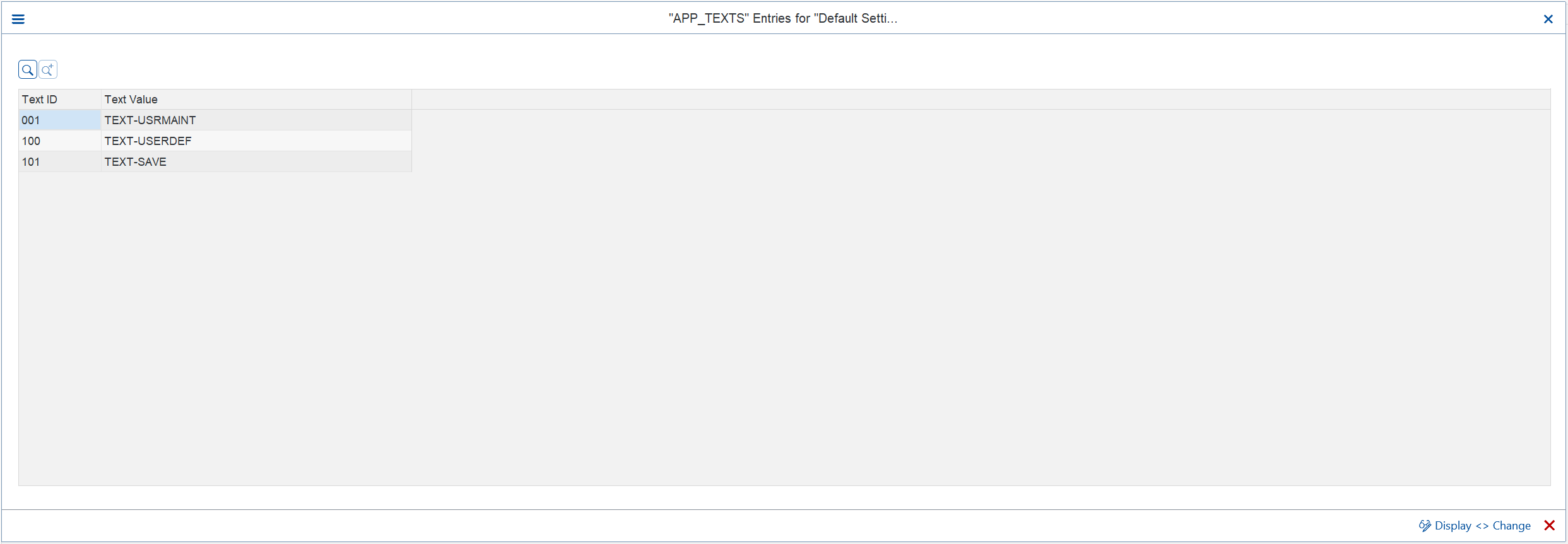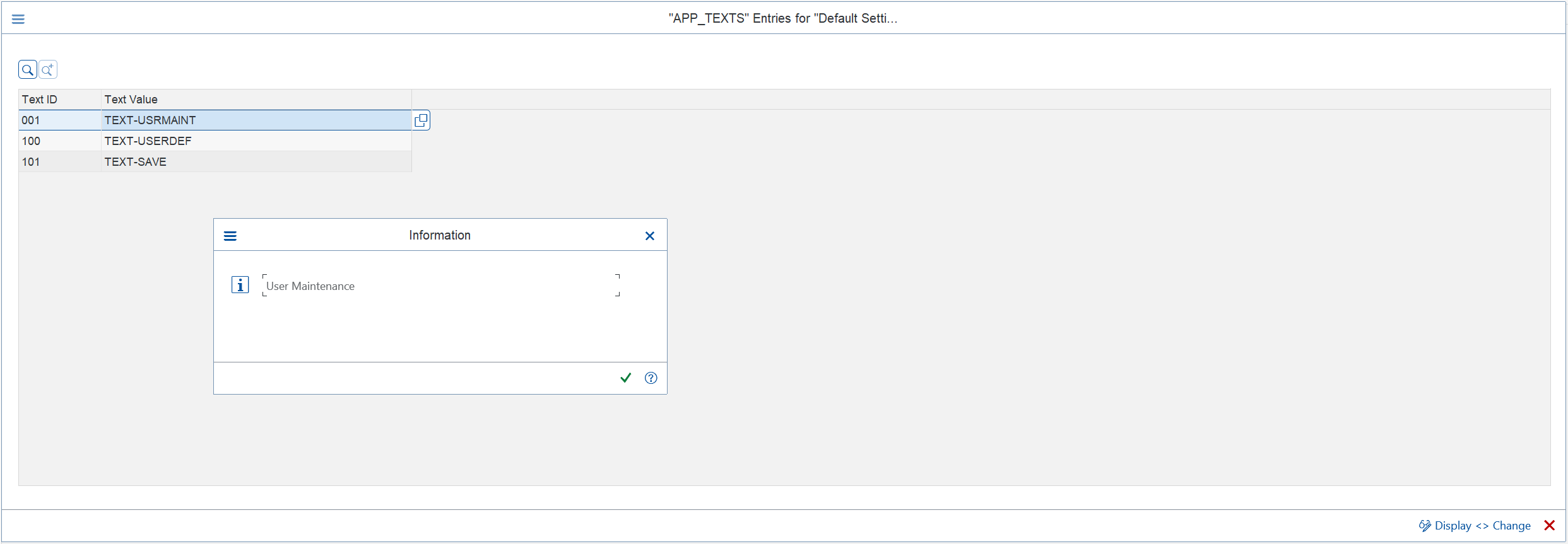 Pressing F1 on a particular “Text” will display the currently maintained text for that Text ID.