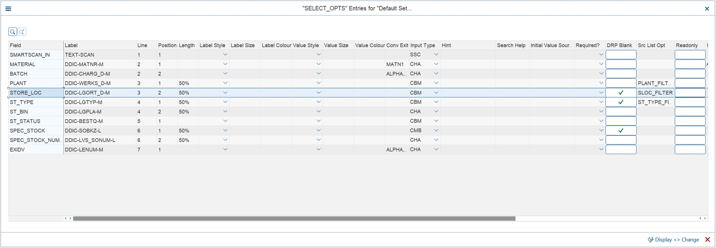 Adding a FILTER configuration option to a specific field allows the selection criteria available for that field to be reduced. Typical filters could be for plant (PLANT_FILTER), storage location (SLOC_FILTER), movement type (GI_MTYPE_FILTER), etc.