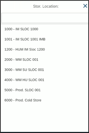 If an input type of CHA (Character) is entered against a field that can also be set up as a CBM (Combi Multi) field, multiple options can be entered by separating the entries with a comma. For example; to select multiple storage types in a CHA input field the user would enter HR1, MN1. When using commas for multiple entries, all entries must be an exact match, i.e. wildcards and input help functionality will not be available.
