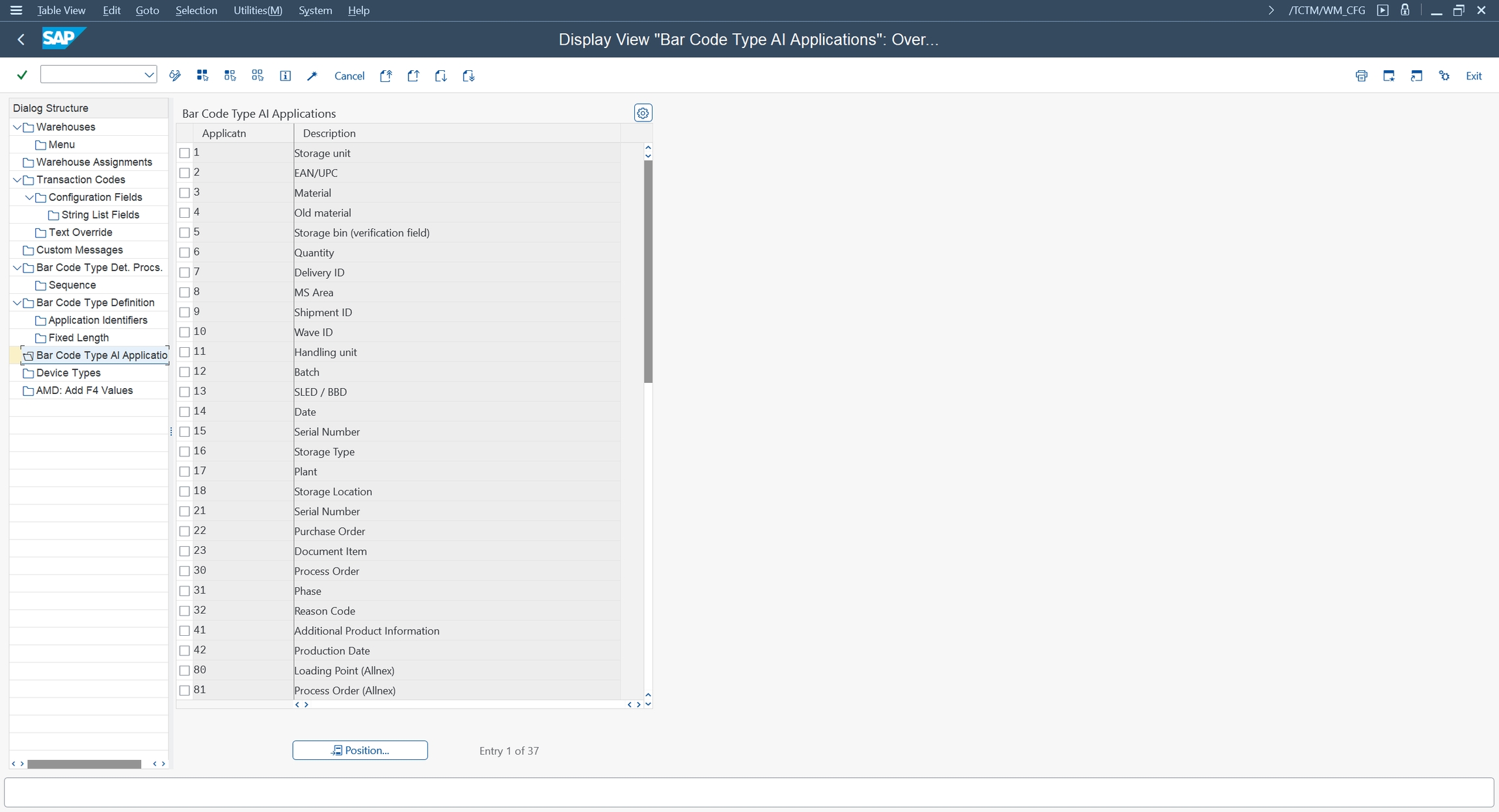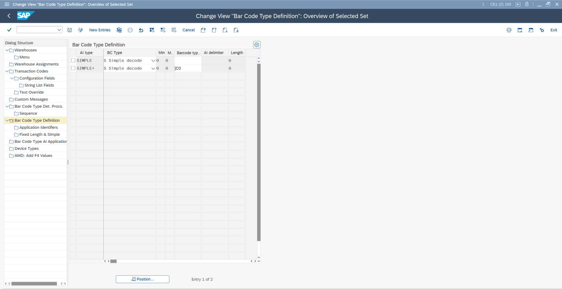 The PreBilt barcode decoding is based on the standard SAP WM barcode decoding but with some enhancements and therefore is separate from the standard WM setup that may already be in place. This allows IM warehouses to have barcodes configured similarly to the standard WM approach and cater for some basic non-GS1 barcodes.