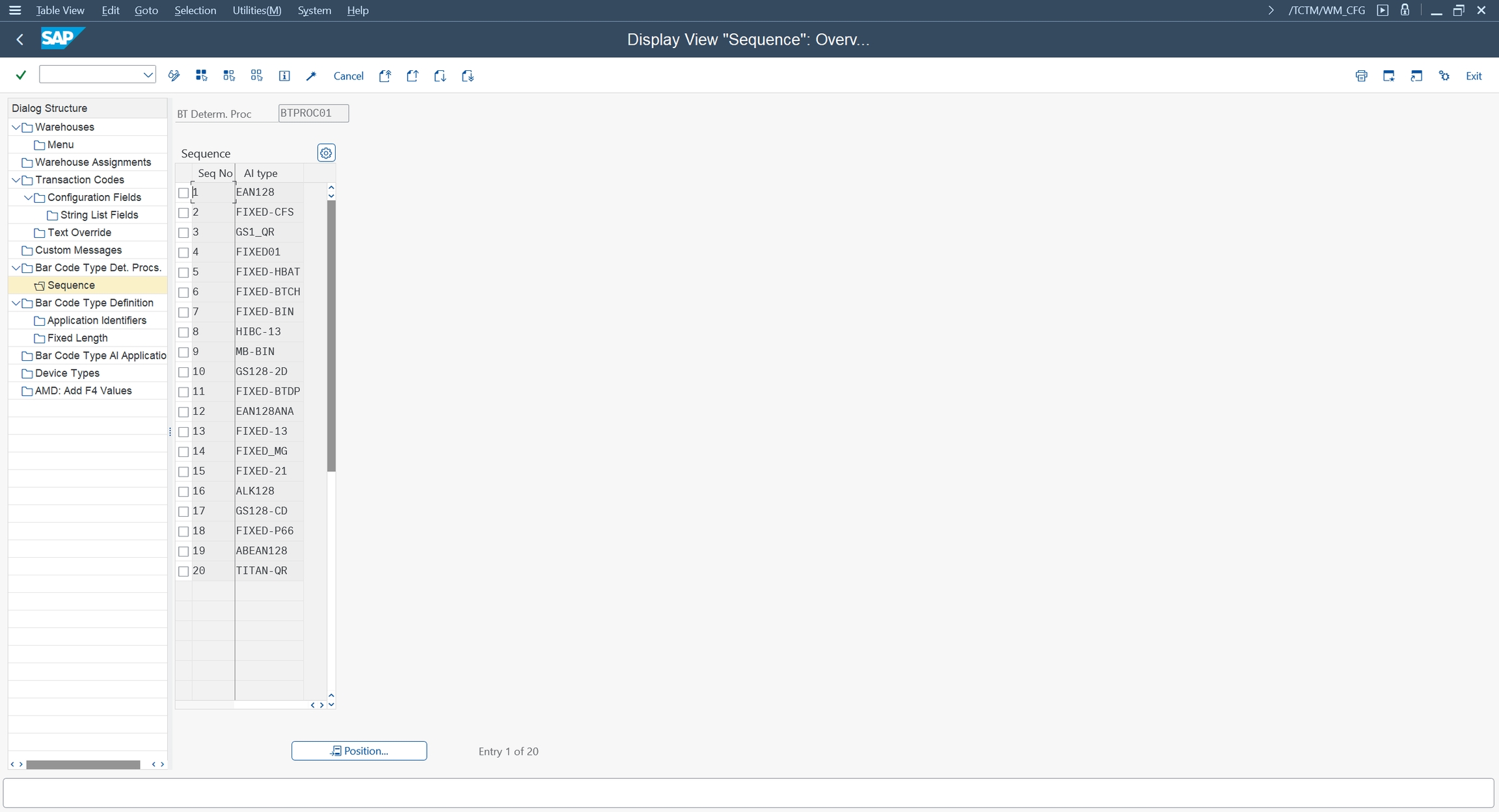 For each Bar Code Type Determination Procedure that is created, select ‘Sequence’ and enter all the required Bar Code Types in the correct sequence.