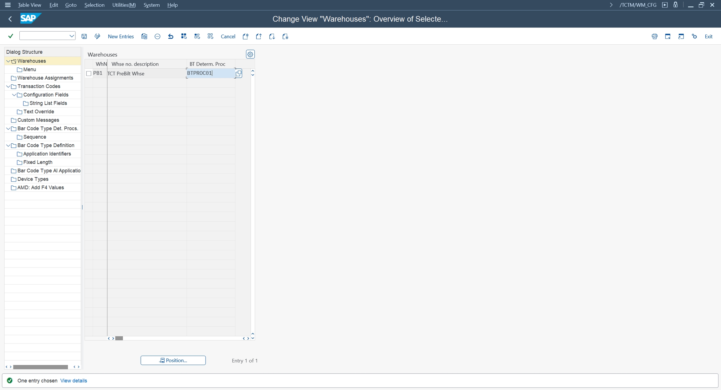 Create a new Bar Code Type Determination Procedure as required. This will then later be assigned to the specific warehouses it is relevant for.