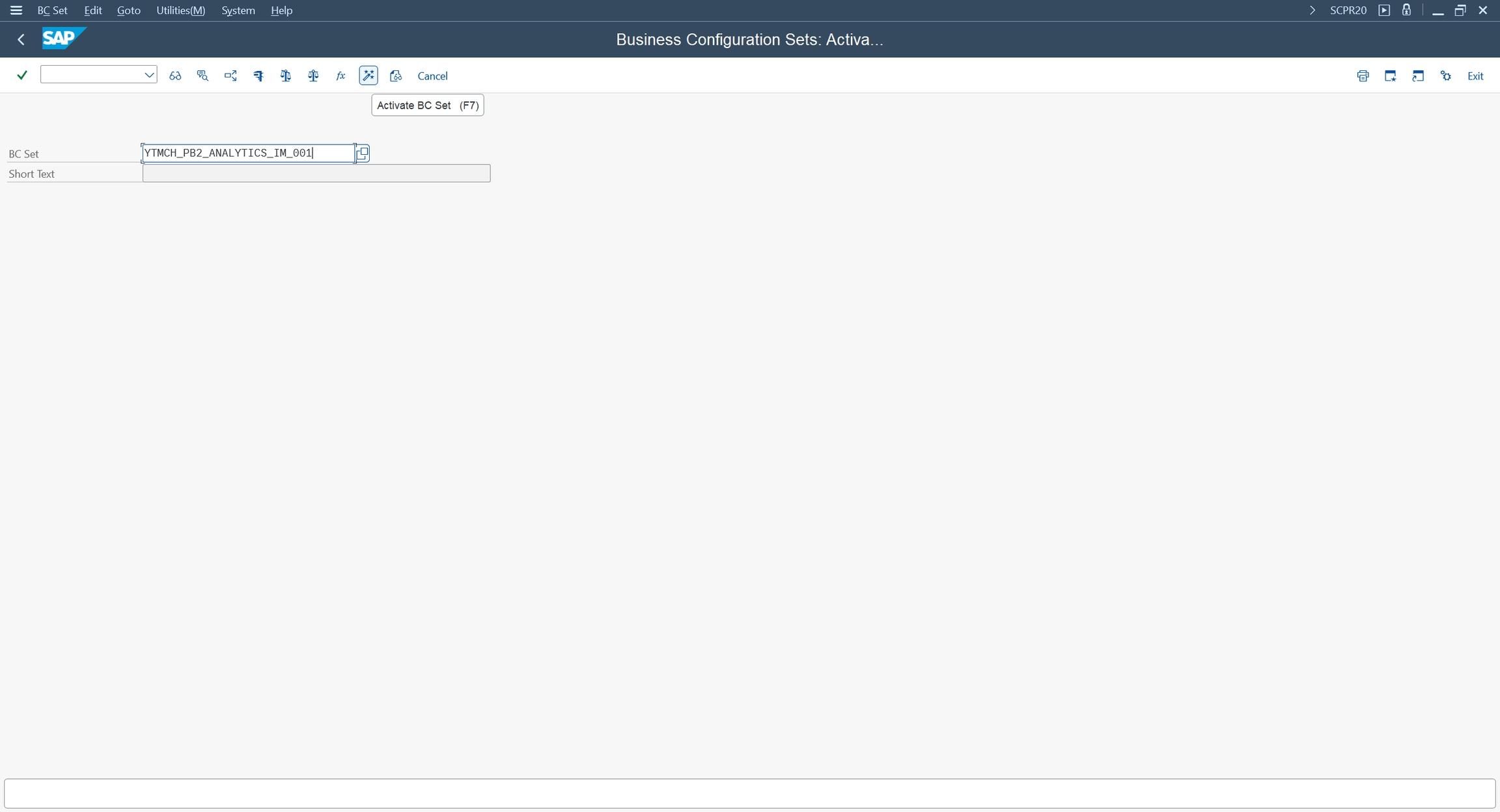 In transaction SCPR20, enter the name of the BC Set and select the ‘Activate BC Set’ icon.