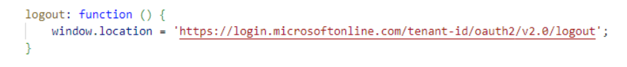 Logging out of the application should be handled in the logout function in tctm_apps.js. This can vary based on the Single Sign On provider. As an example, when using Microsoft Entra a redirect to the Entra sign out page can be used. This URL should contain the actual tenant id.