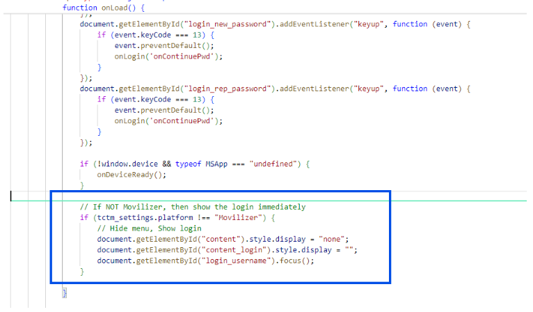 Remove this section of code so that the standard PreBilt login menu is not displayed: