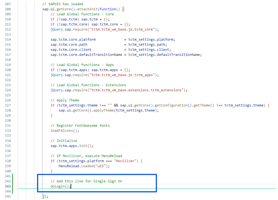 Add a call to doLogin(). This will load the main menu immediately as the user has been logged in via Single Sign On by this point: